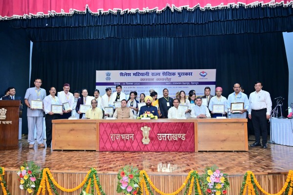 देहरादून। ‘‘शैलेश मटियानी राज्य शैक्षिक पुरस्कार’’ सम्मान समारोह में राज्यपाल लेफ्टिनेंट जनरल गुरमीत सिंह (से नि), मुख्यमंत्री पुष्कर सिंह धामी और शिक्षा मंत्री डॉ. धन सिंह रावत ने वर्ष 2023 में शैलेश मटियानी राज्य शैक्षिक पुरस्कारों के लिए चयनित शिक्षक एवं शिक्षिकाओं को सम्मानित किया। शिक्षक दिवस के अवसर पर राजभवन में आयोजित सम्मान समारोह में साल 2023 के लिए चयनित 19 शिक्षकों एवं शिक्षिकाओं को पुरस्कार प्रदान किए गए है।