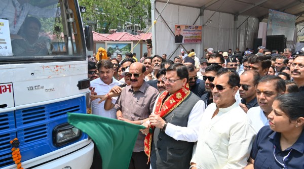 श्रद्धालुओं को चारधाम यात्रा के लिए ले जा रही 10 बसों को सीएम ने दिखाई हरी झंडी।