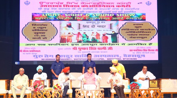 मुख्यमंत्री पुष्कर सिंह धामी ने रविवार को गुरु तेग बहादुर जी के 350वें बलिदान वर्ष को समर्पित नाटक ‘हिन्द दी चादर’ के मंचन कार्यक्रम में प्रतिभाग किया। उत्तराखण्ड सिक्ख कोऑर्डिनेशन कमेटी एवं श्री गुरू तेग बहादुर चैरिटेबल चिकित्सालय द्वारा नाटक ‘हिन्द दी चादर’ का मंचन कार्यक्रम दून मेडिकल कॉलेज, पटेलनगर देहरादून में किया गया।