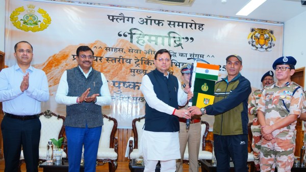 भारत-तिब्बत सीमा पुलिस बल के हिमाद्री ट्रैकिंग अभियान-2025 के तहत 45 सदस्यीय दल उत्तराखंड से लद्दाख के लिए रवाना हो गया है। इस ट्रैकिंग अभियान के सदस्यों को मुख्यमंत्री पुष्कर सिंह धामी ने शनिवार को मुख्यमंत्री कैम्प कार्यालय से हरी झंडी दिखाकर रवाना किया। हिमाद्री ट्रैकिंग अभियान के तहत मुख्य सेवा सदन में आयोजित कार्यक्रम के दौरान सीएम नेआईटीबीपी के वीर जवानों, अधिकारियों का स्वागत करते हुए कहा कि यह अभियान न केवल साहस और संकल्प का प्रतीक है, बल्कि सीमावर्ती क्षेत्रों की सामरिक सुरक्षा और सांस्कृतिक विरासत के संरक्षण की दिशा में भी एक महत्वपूर्ण कदम है।