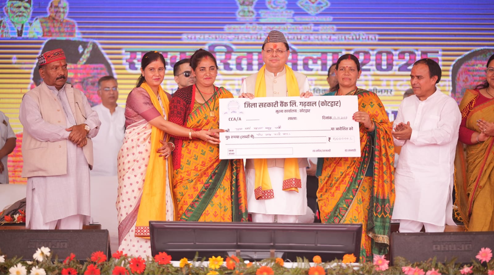 साथ ही कहा कि आज प्रदेश के सहकारी बैंकों में 16 हजार करोड़ रुपये की सहकारी पूंजी जमा होना जनता के विश्वास का प्रमाण है। मुख्यमंत्री ने कहा कि स्वयं सहायता समूहों के माध्यम से महिला उद्यमिता को नई दिशा मिल रही है और “लखपति दीदी” अभियान तेजी से आगे बढ़ रहा है। प्रधानमंत्री नरेंद्र मोदी के “इक्कीसवीं सदी का तीसरा दशक उत्तराखंड का होगा” कथन को राज्य की महिलाएँ अपने गुणवत्तापूर्ण उत्पादों के माध्यम से साकार कर रही हैं। मुख्यमंत्री ने कहा कि राज्य सरकार ने जनपदों में चल रहे विकास कार्यों को प्राथमिकता दी है। राज्य में समान नागरिक संहिता लागू कर उत्तराखंड देश का पहला राज्य बना है। नकल माफियाओं पर अंकुश लगाने हेतु देश का सबसे सख़्त नकल विरोधी कानून लागू किया गया है और सौ से अधिक नकल माफियाओं को जेल भेजा गया है।
